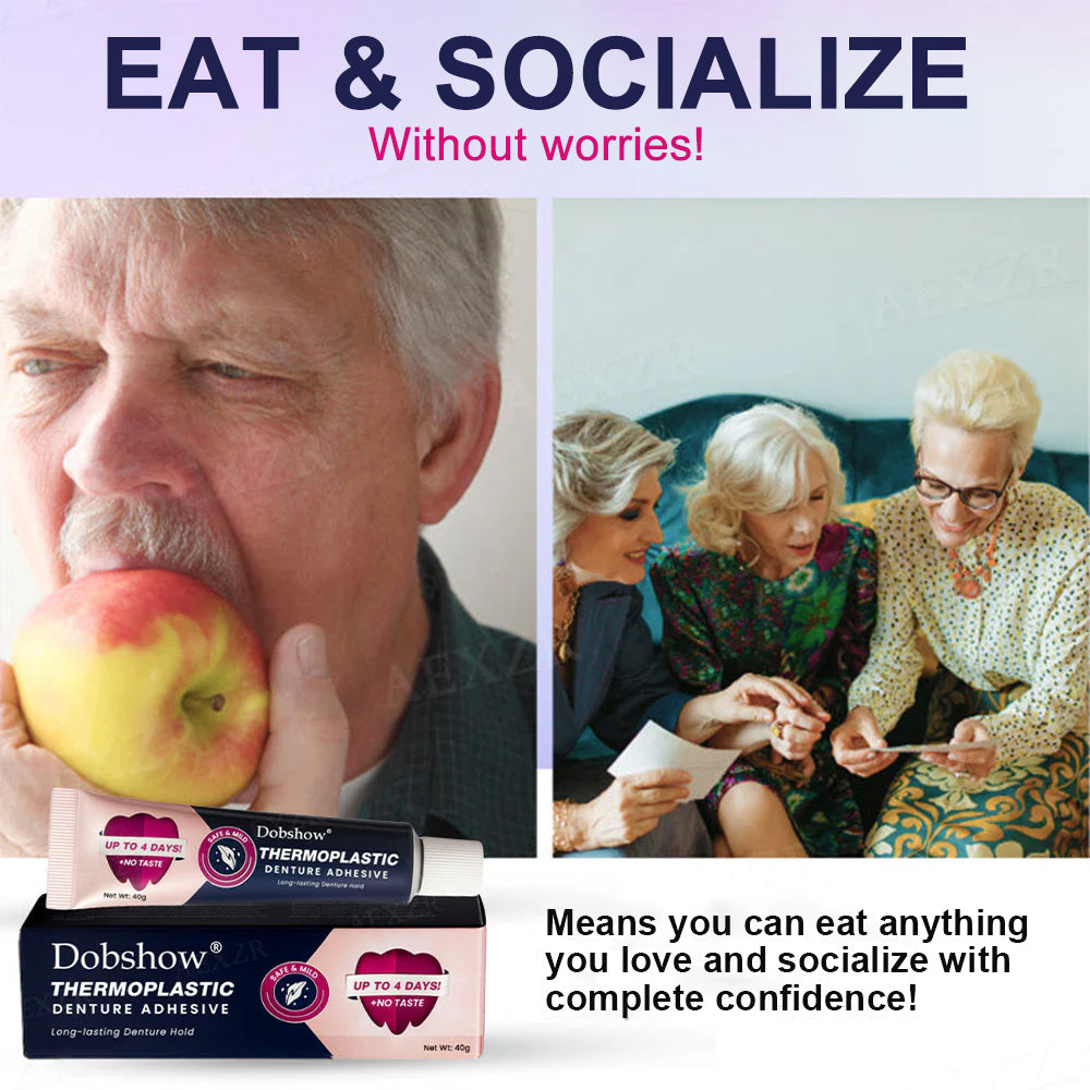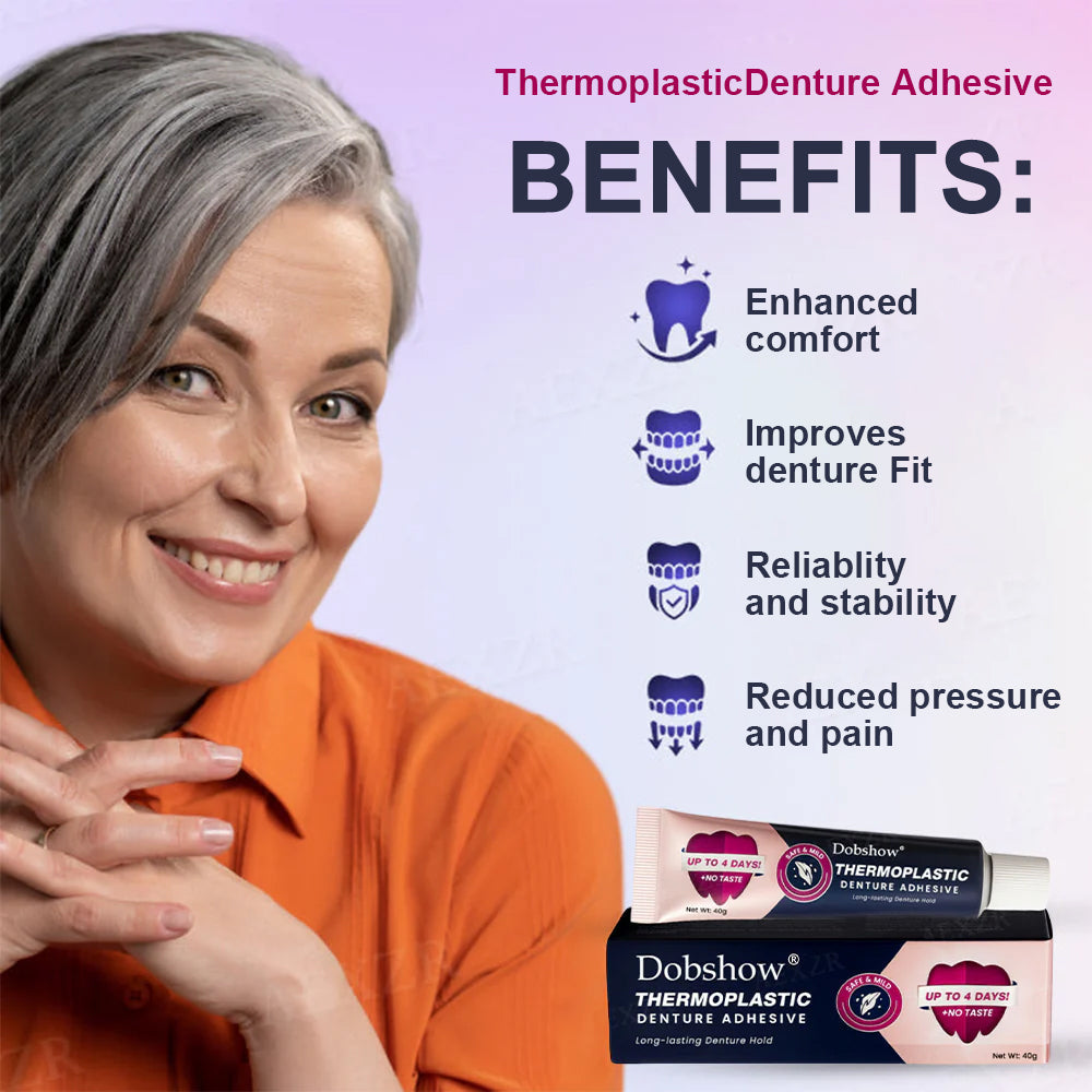 Say goodbye to loose dentures, sticky pastes, and daily reapplications. With Dobshow® Thermoplastic Denture Adhesive, you can enjoy days of effortless hold, all-day comfort, and complete peace of mind. Order now and experience the adhesive that truly holds up.